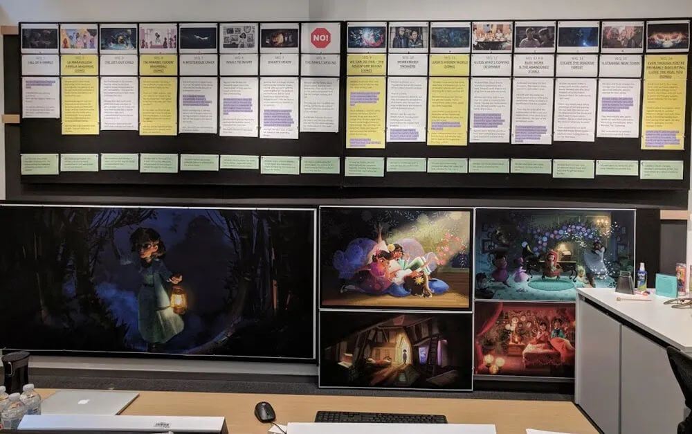 负责故事开发的艺术家们和编剧、剪辑师紧密合作,将导演脑中的故事,用视觉的方式呈现出来。故事板由迪士尼动画工作室在20世纪30年代研发,这种艺术形式代代传承,直至如今。