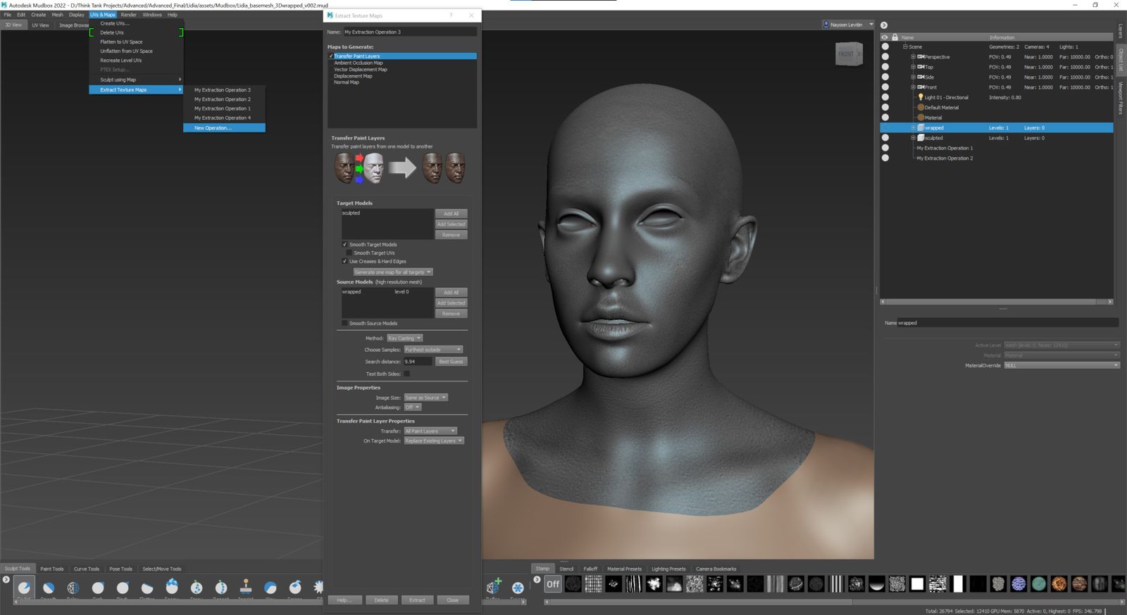 R3dS Wrap用于传输皮肤细节。纹理是在3D扫描商店网站上购买的。它们的纹理是从人体模型中扫描出来的,因此皮肤看起来很逼真。选择纹理时,请考虑人的肤色和年龄,使其与概念中的外观相匹配。