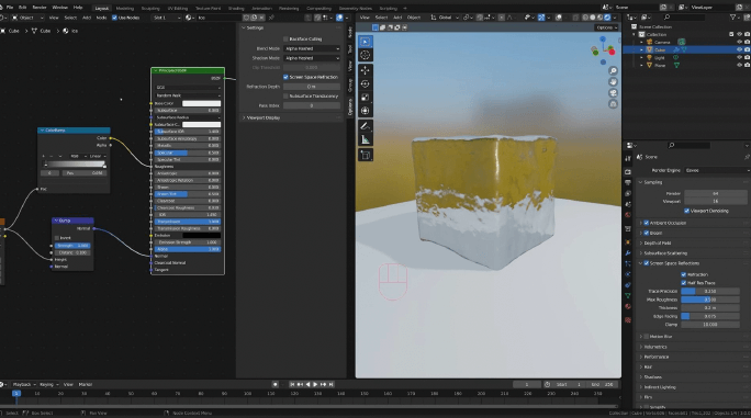 Cycles渲染引擎是最好的选择,但为了演示,我们将首先使用Eevee。在使我们的立方体透明之前,我们有一些设置需要设置。