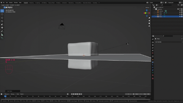 然后我们可以按S键来缩放这个平面,按G和Z键来移动这个平面。