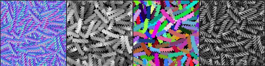 Fusilli Pasta项目主要是一个关于Houdini工作流程的实验,因为当涉及到在Substance 3D Designer中分配形状时,"瓷砖采样器 "和 "形状溅射 "节点将始终导致形状重叠和相交,据我所知,没有什么简单的方法可以解决这个问题,这个项目的目标是要解决这个问题,因此,我决定使用Houdini运行一个简单的物理模拟,制作一个面食堆,然后烘烤所有必要的地图,如法线、高度、AO、ID和曲率,并将它们导入到Substance 3D Designer中。