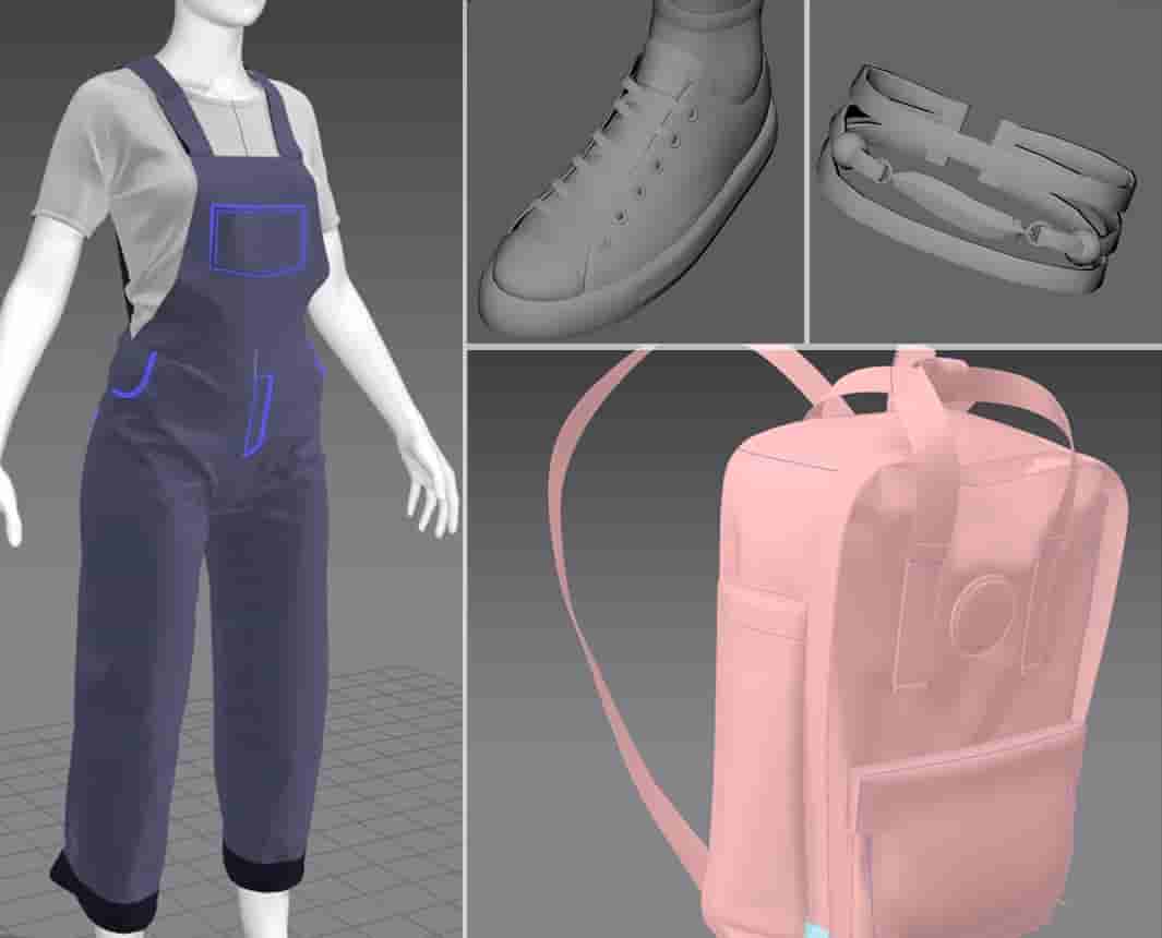 此外,在所有衣服和运动鞋上,我都制作了比现实生活中更大的织物图案,以便从远处读取纹理。