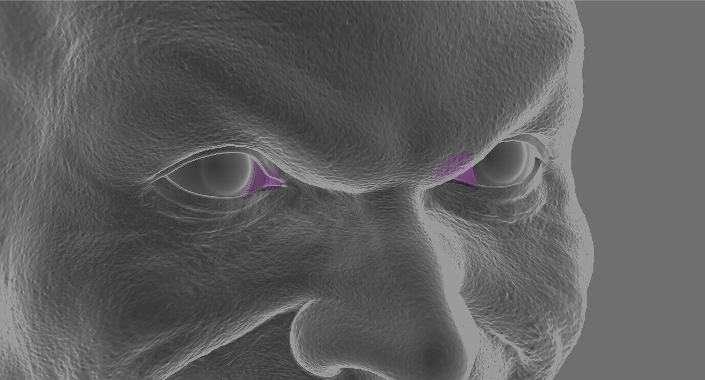 在虹膜区域,我的第一步是收集虹膜图案和空腔的参考。该过程与角膜区域类似。最初,我对角膜腔进行建模,然后使用带有小尖端的标准画笔,激活 Alpha 并选择“激活对称”在虹膜周围创建线条。