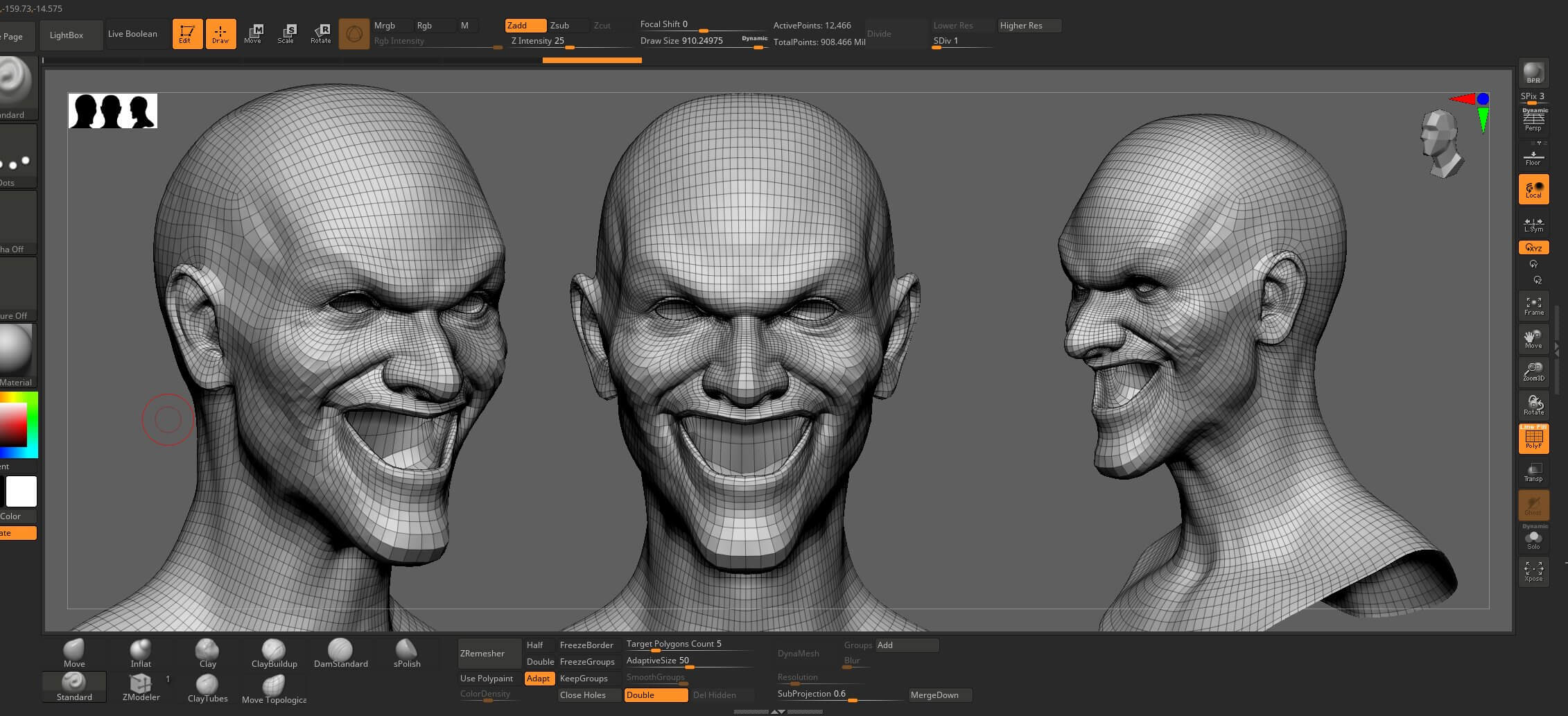 我在ZBrush中做了脸部建模。我把所有的想法放在一起,然后画了一张脸部草图。