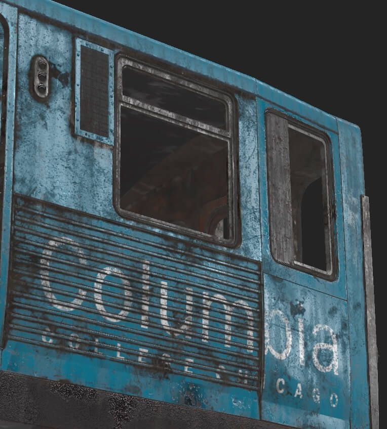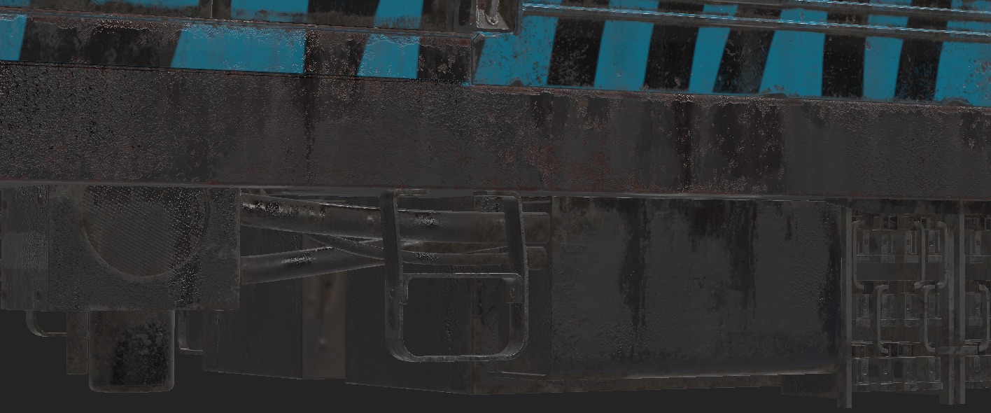 纹理化过程是一个非常标准的金属粗糙度 PBR 工作流程。我制作了几种定制的智能材质,并将它们用于所有纹理集。最复杂的是锈智能材料,它是一种黑色金属材料与红色锈材料的混合物。最重要的是,这种混合物还具有严重的锈斑,使其看起来陈旧且破旧。