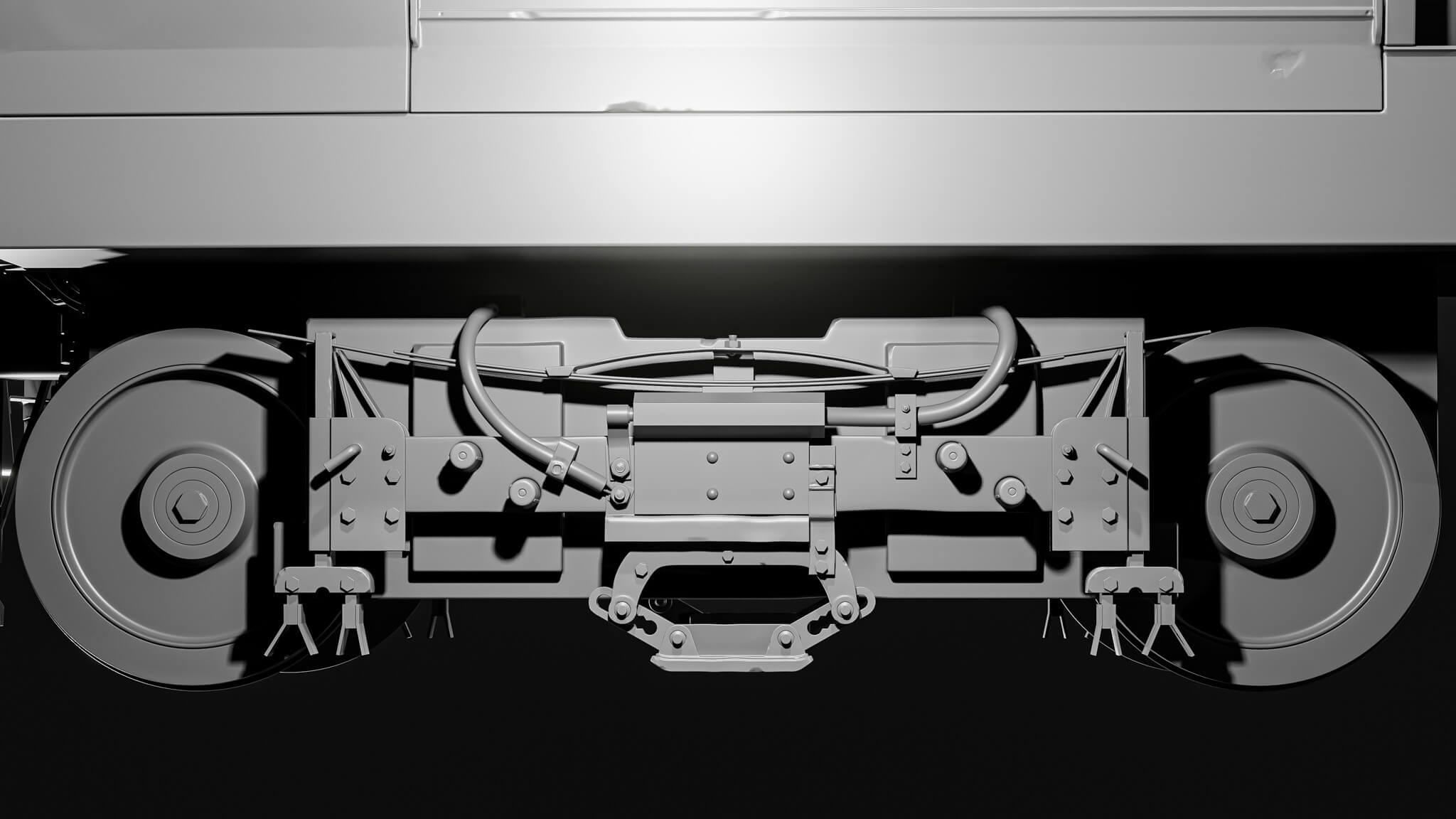 我必须临时制作一些看起来机械的部件,并使用 kitbash 部件。对车轮的设计,我可以使用的参考资料很少,但它们最终成为火车最详细的部分之一。