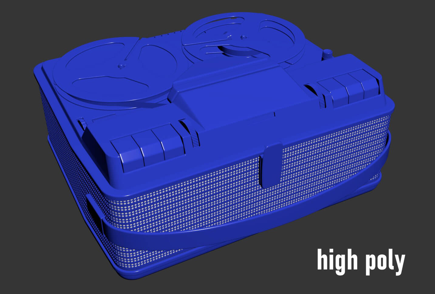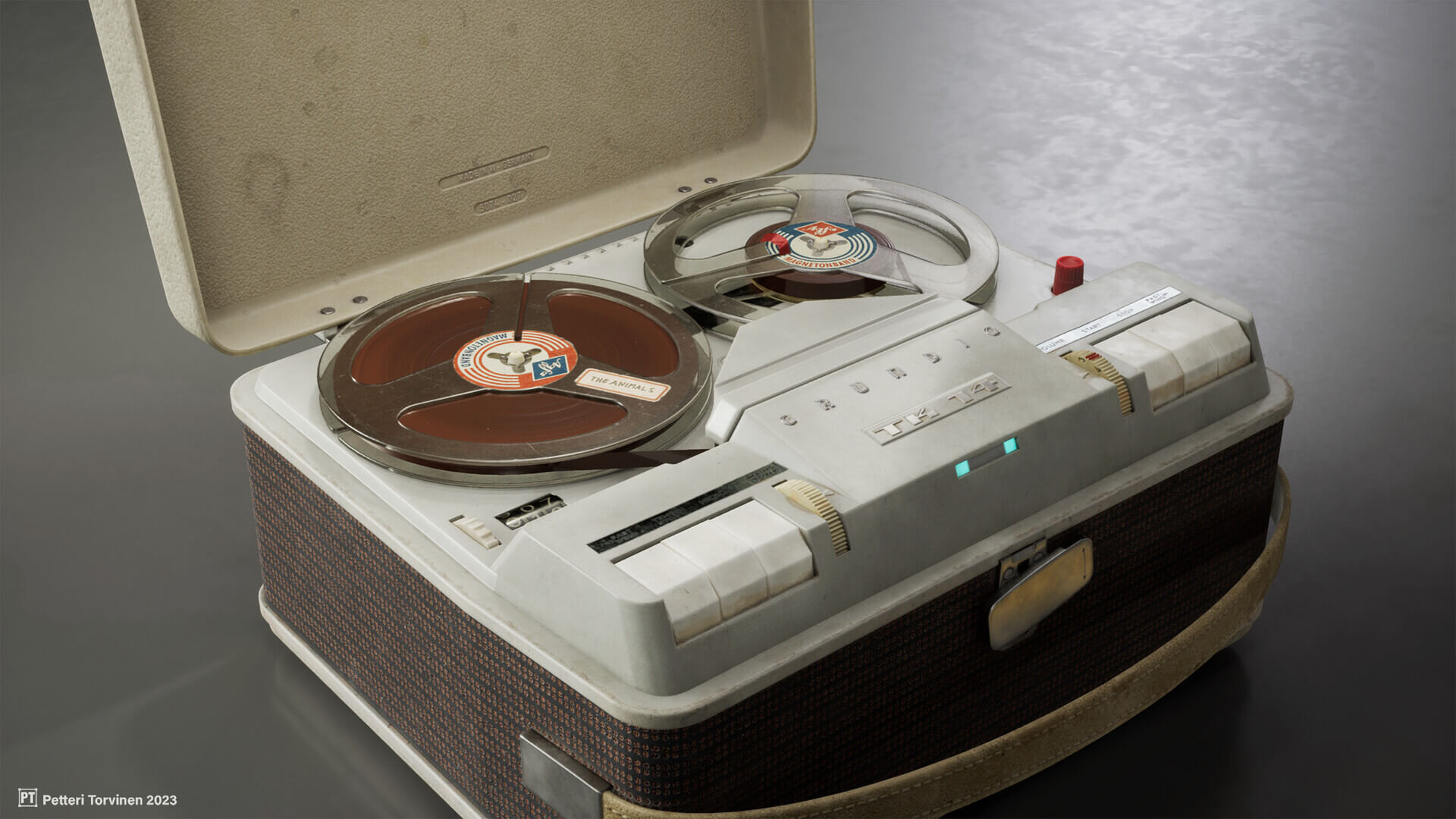 我对作品集的处理方式是,我想创造一些以前从未做过的独特作品。我记得小时候玩过的这个有趣的小手提箱式录音机。旧的小玩意总是很有趣,盖子和卷轴提供了制作许多不同渲染的机会。